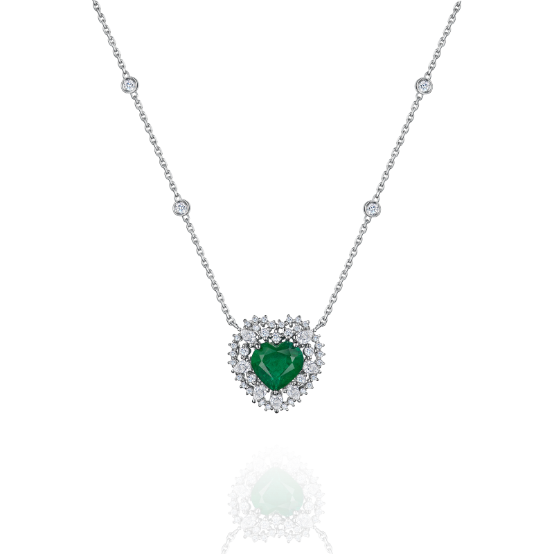 Emerald cut heart. Pear-cut and round-cut diamonds.